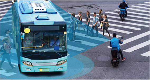 BSD(Blind Spot Detection): Detect the pedestrians and vehicles approaching the bus and reminder the driver to avoid blind spot accident.