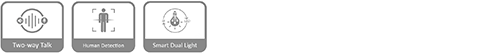 Motion/Tampering detection; audio detection; network disconnection detection; IP conflict detection; memory card state detection; memory space detection | ||||||||||||||||||||||||||||||||||||||||||||||||||||||||||