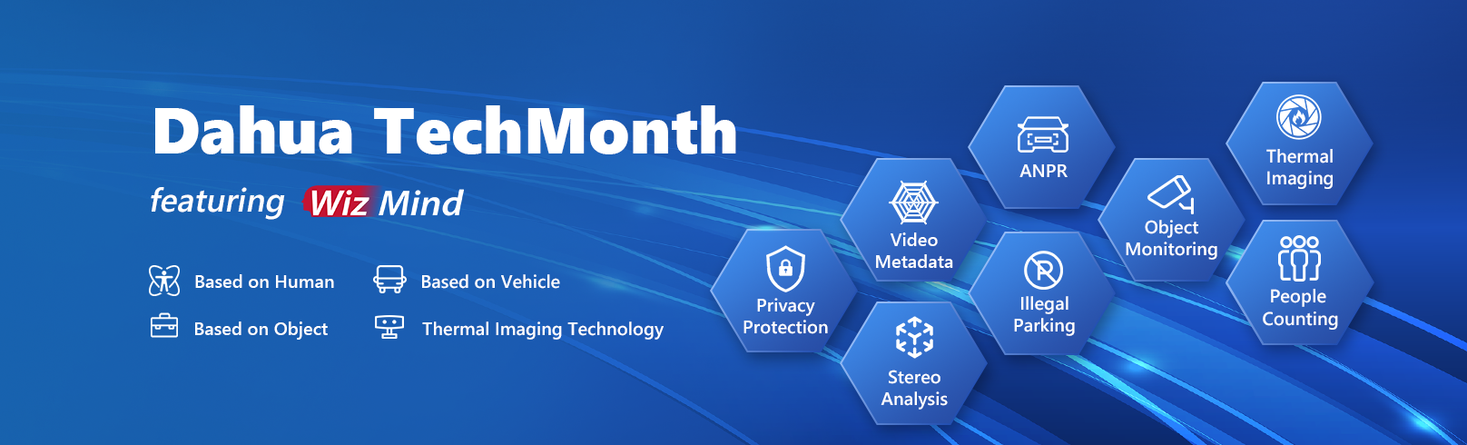 Sure. Powered by deep learning algorithm, the Dahua WizMind is basically a comprehensive portfolio of project-oriented AI products and solutions, including IPC, NVR, PTZ, XVR, thermal imaging devices, and software platforms. It is designed to meet the complex requirements of high-end vertical markets, such as retail, energy, finance and transportation. Its main applications are based on human and vehicle, which address the ever escalating complexity of security challenges like large flow of people and vehicles. At the same time, it also provides applications based on object and thermal imaging.