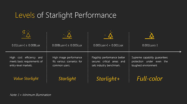 From Value Starlight to Full-color, Dahua Starlight family meets both entry-level and high-end needs according to different lighting conditions. While Value Starlight represents cost-efficient solutions for entry-level markets, Starlight, Starlight + and Full-color respectively offer right solutions for common users, critical scenarios and toughest environment with their various performance.