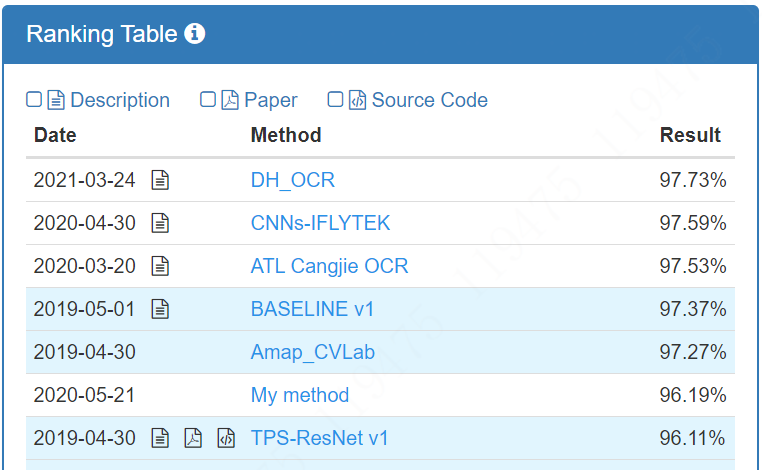 Taak 2 behandelt tekstregelherkenning in een uithangbord. De bijgesneden tekstlijnbeelden en de coördinaten van de veelhoekige begrenzingen in de beelden worden ook gegeven in deze specifieke taak. De trainingsgegevens van het Dahua-team omvatten ReCTS, LSVT, RCTW, ART en enkele kunstmatige synthetische gegevens van hoge kwaliteit. CRNN framework werd gebruikt voor tekstherkenning, samen met verschillende structuren van multi-scale feature extraction backbone zoals SAResNET. Het team gebruikte ook multi-model fusie om het eindresultaat te voorspellen. Het resultaat was dat het Dahua-team de eerste plaats behaalde voor deze taak, met een totaalscore van 96,93%.