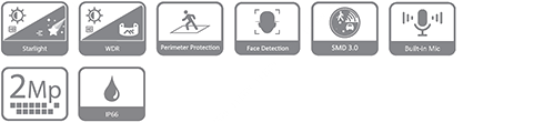 | Video Compression | H.264H; H.264B; Smart H.265+; H.264; H.265; MJPEG (Sub Stream); Smart H.264+ | ||||||||||||||||||||||||||||||||||||||||||||||||||||||||||