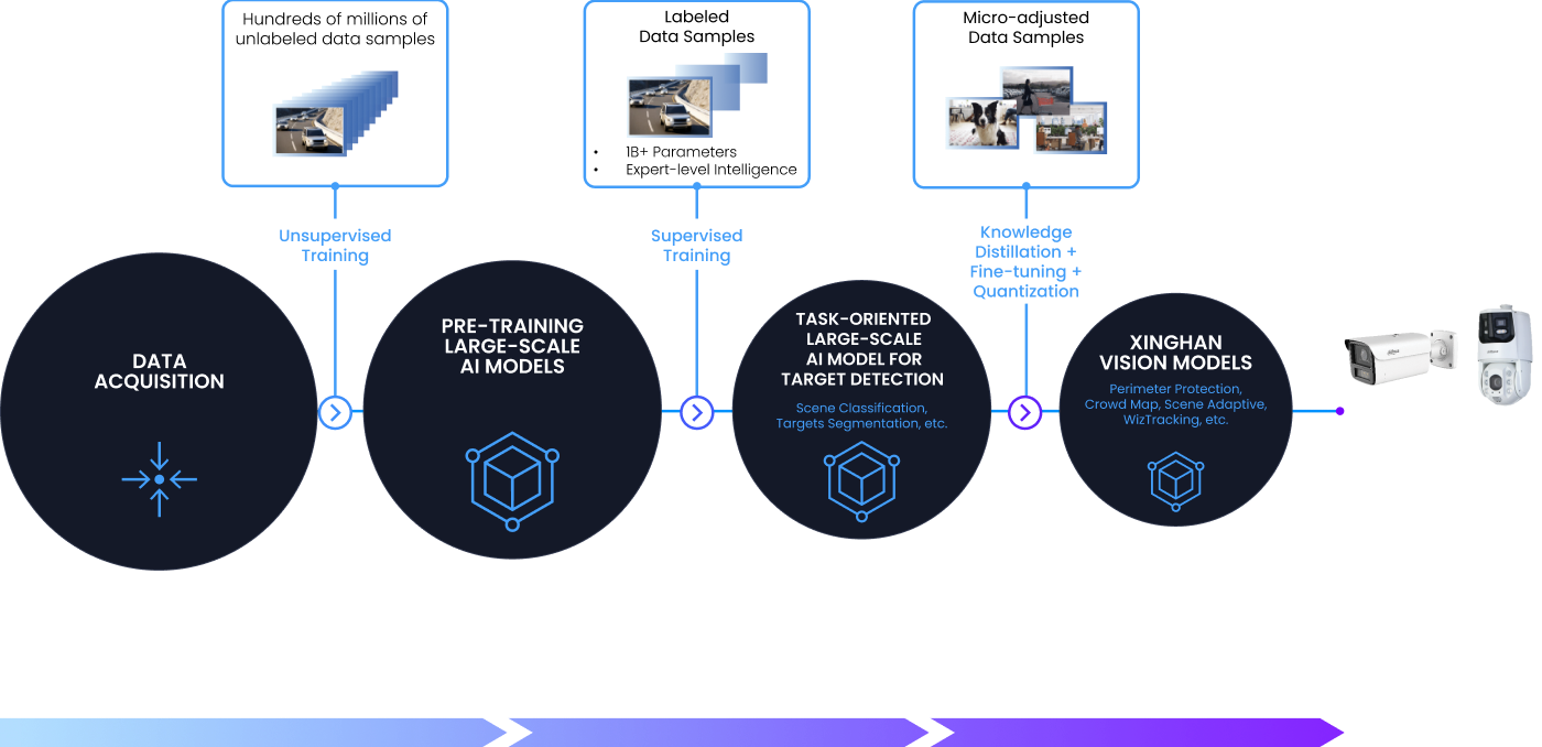 The Xinghan Large-Scale AI Model leverages situational awareness to analyze both spatial and contextual characteristics of a scene, enabling intelligent and automated camera configuration.