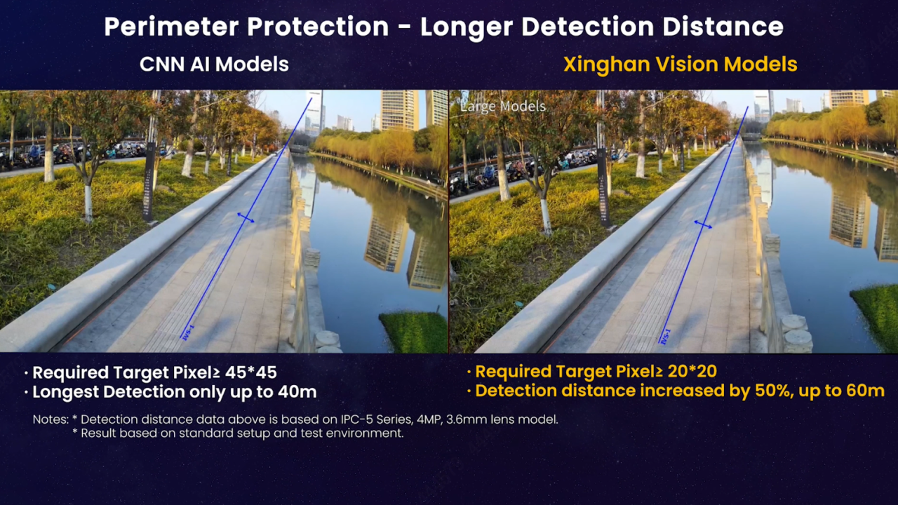The Xinghan Vision Models extends the coverage and range of perimeter detection by accurately identifying smaller targets.