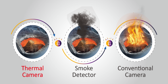 Early detection is the only way to ensure that small fires at early stage can be extinguished quickly and easily. Traditional detectors only generate an alarm when the fire, smoke or high temperature has reached the detector, which means that the fire itself has already developed and spread in the area.