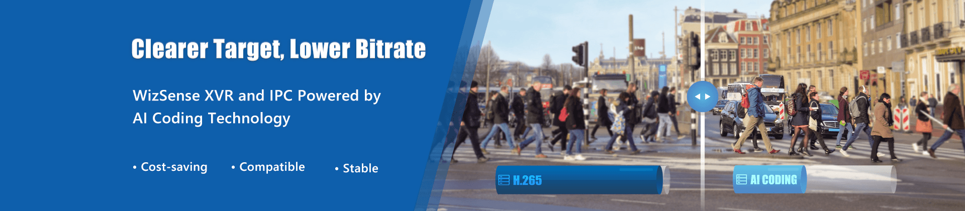 ·Saves more than 50% bandwidth and storage costs compared with H.265 while maintaining valuable target image details.