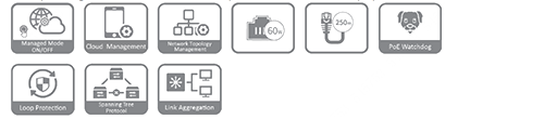 | PoE Power Consumption Management | PoE power consumption management; PoE power on/off; turns off PoE if overload is detected | ||||||||||||||||||||||||||||||||||||||||||||||||||||||||||