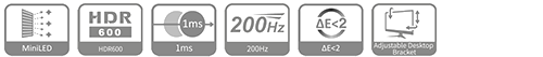 > Experience stunning visuals with HDR600, delivering ultra-bright highlights, deep blacks, and lifelike contrast for truly immersive viewing.