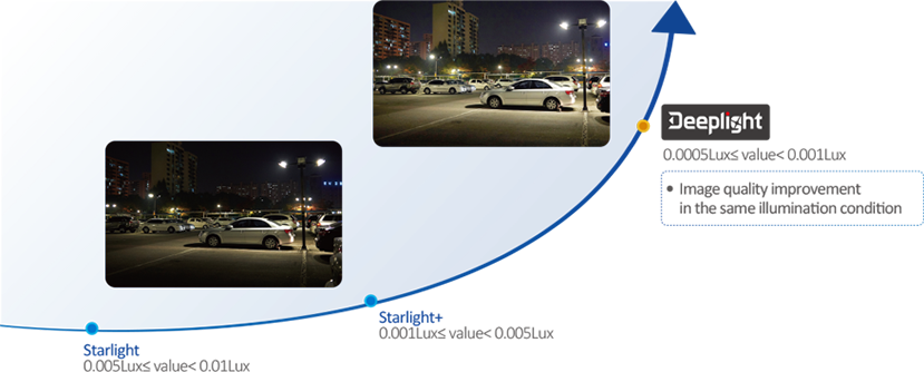 The IPC WizMind S series has upgraded its low-illumination effects Starlight and Starlight+ into a higher level called Deeplight. Cameras with Deeplight utilizes deep learning algorithms to process images, effectively reducing noise and achieving better images with higher clarity in environments with low illumination or during night time.