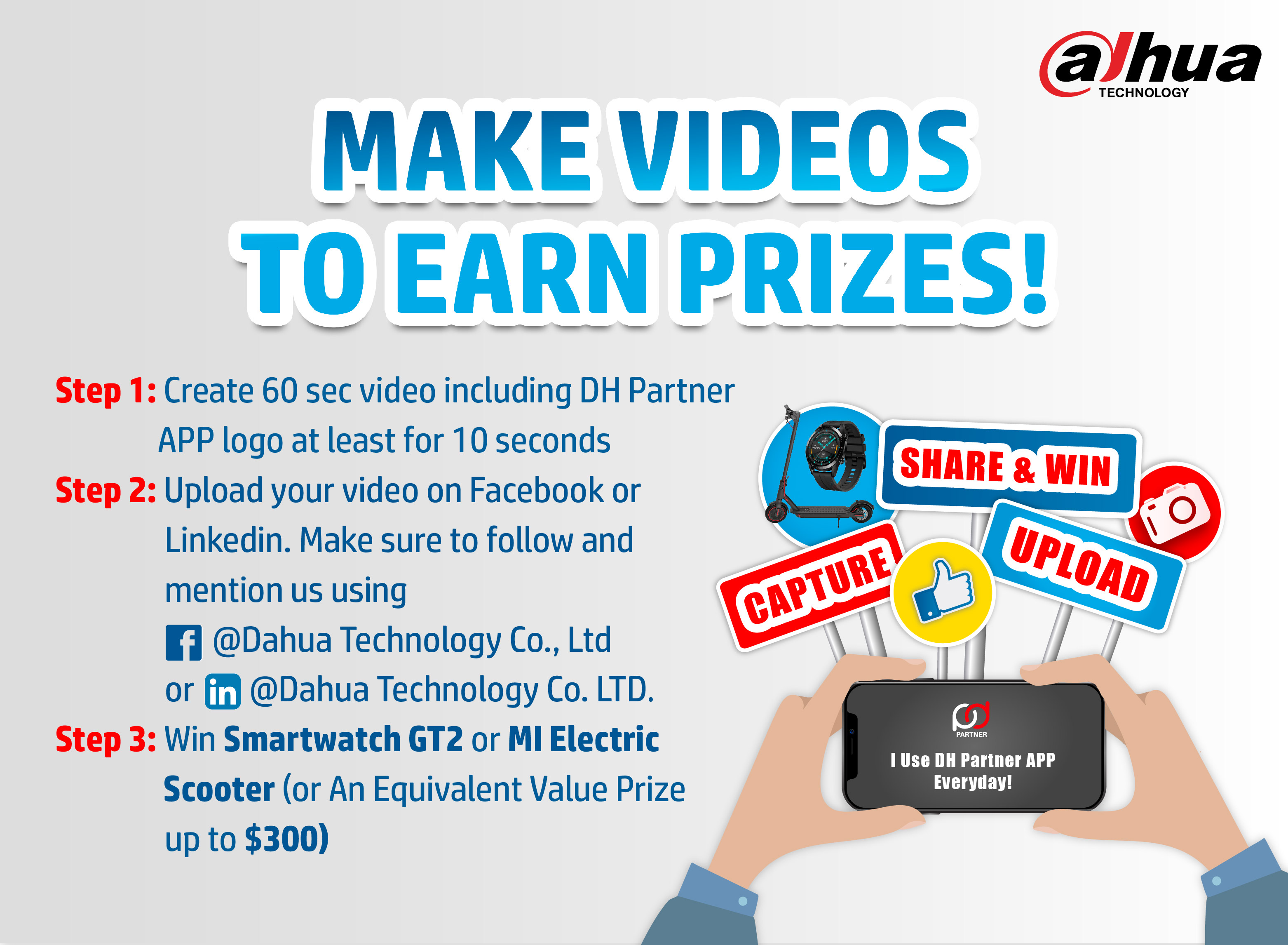 ► Must follow Dahua’s official Facebook or Linkedin account.