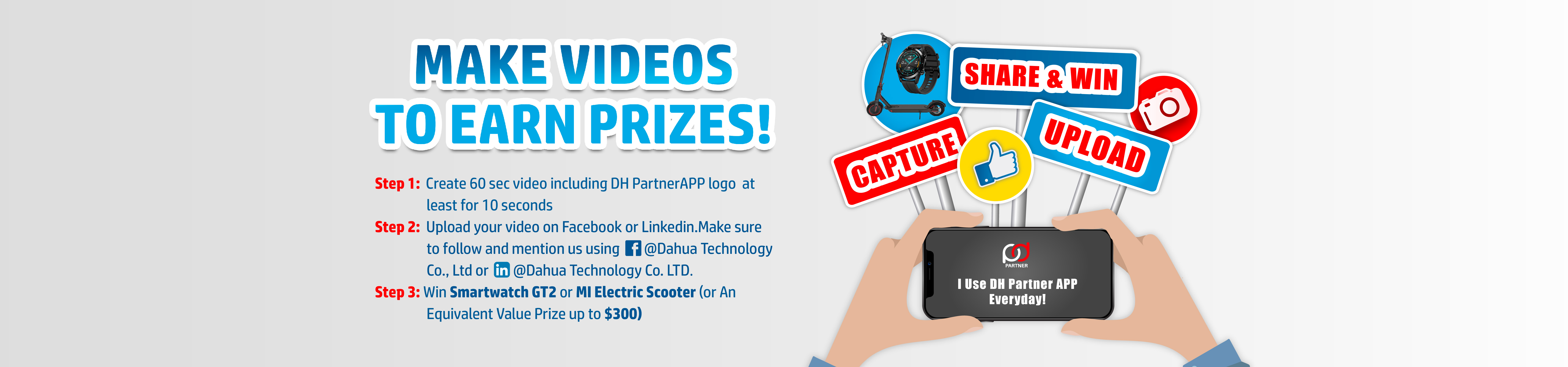 ► Using “I Use DH Partner APP Everyday” as the main theme, create a 60-second video and make sure that the APP logo is displayed for at least 10 seconds.