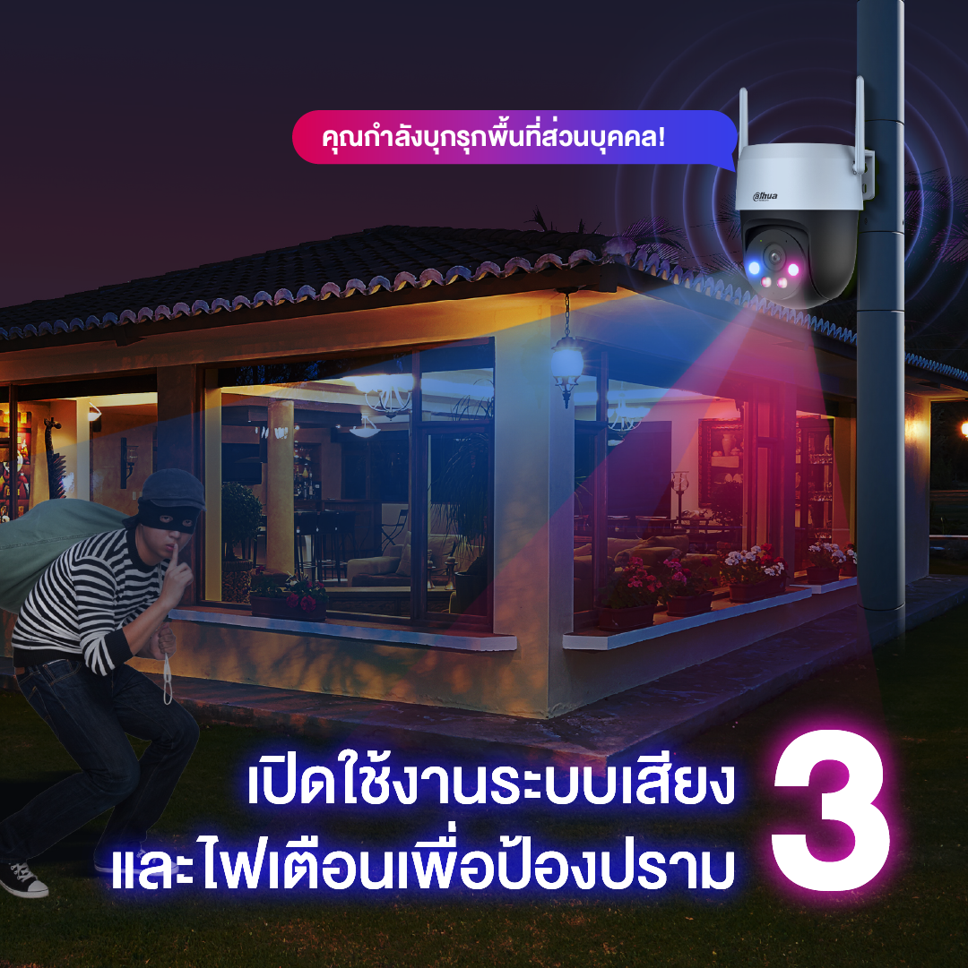 3. เปิดใช้งานระบบเสียงและไฟเตือนเพื่อป้องปราม