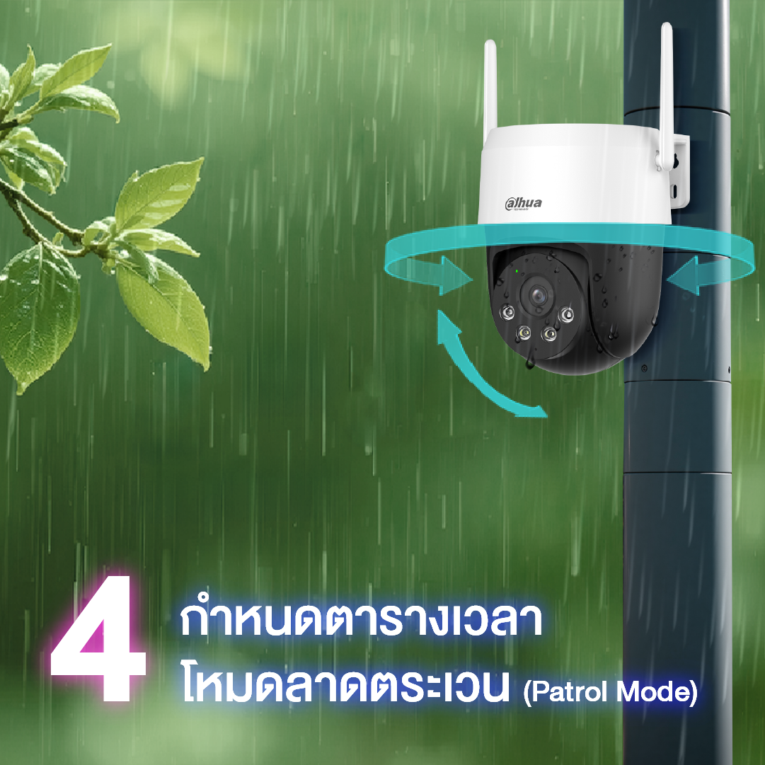 คุณสามารถตั้งค่าให้กล้องหมุนสำรวจพื้นที่ตามจุดที่กำหนดไว้ล่วงหน้าได้อัตโนมัติ หรือที่เรียกว่า "โหมดลาดตระเวน" โดยกำหนดจุดสำคัญที่ต้องการให้กล้องหันไปตรวจตราเป็นพิเศษ เช่น ประตูหน้าบ้าน, โรงจอดรถ, หลังบ้าน เป็นต้น เพื่อให้มั่นใจได้ว่าไม่มีพื้นที่ไหนถูกละเลย